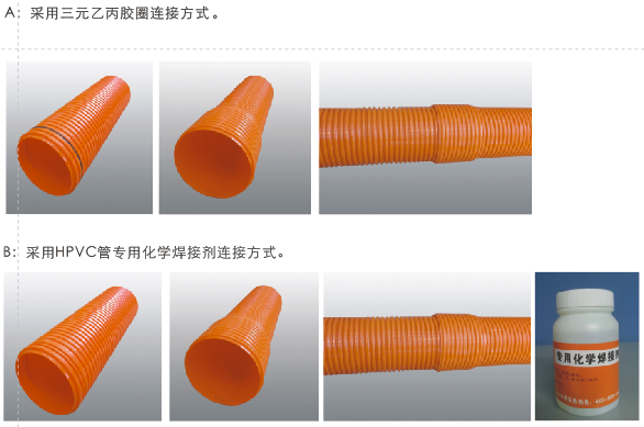 高強(qiáng)度聚氯乙烯(HPVC)雙壁波紋管內(nèi)、外壁之間呈中空環(huán)狀結(jié)構(gòu),充分利用工字鋼結(jié)構(gòu)原理,提高截面慣性矩,環(huán)鋼度高。產(chǎn)品具有強(qiáng)度高、韌性好、質(zhì)地輕等優(yōu)點(diǎn)。產(chǎn)品運(yùn)用開(kāi)挖工程,可代替MPP單壁波紋管、玻璃鋼管、PVC-C電力管、PVC-U通信管等管材。