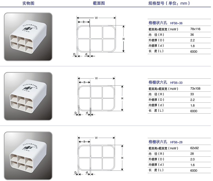“豐”牌PVC六孔柵格管適用于通信光纜的穿導、隔離及保護,廣泛應用于光纖通訊、有線電視、多媒體傳輸等工程。